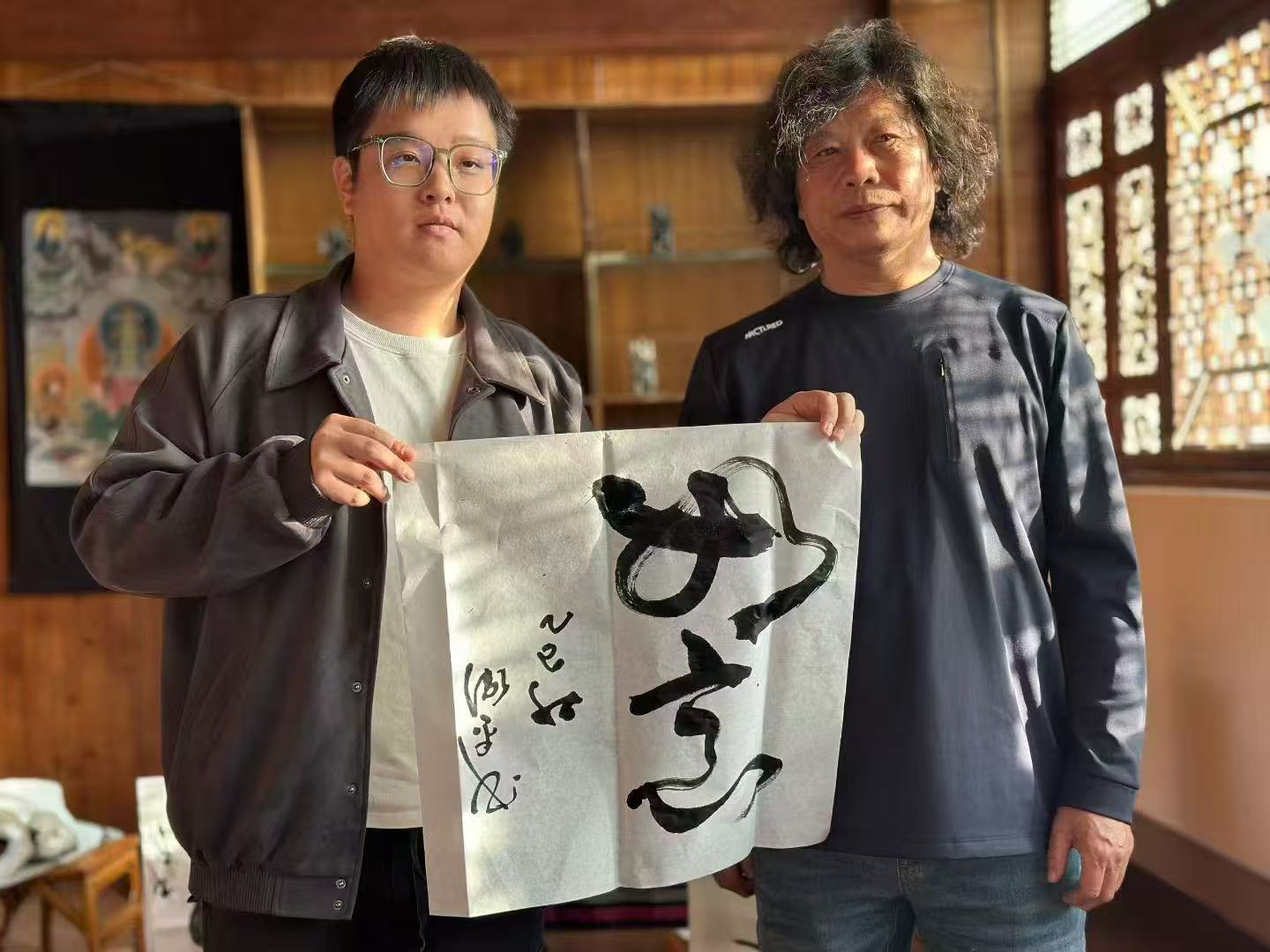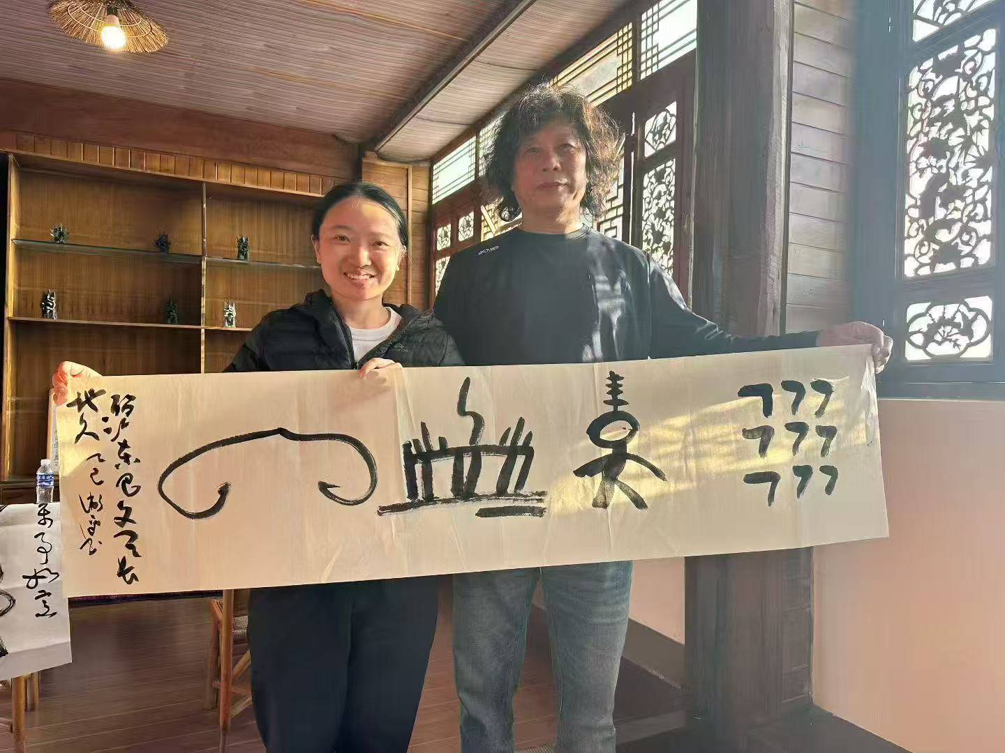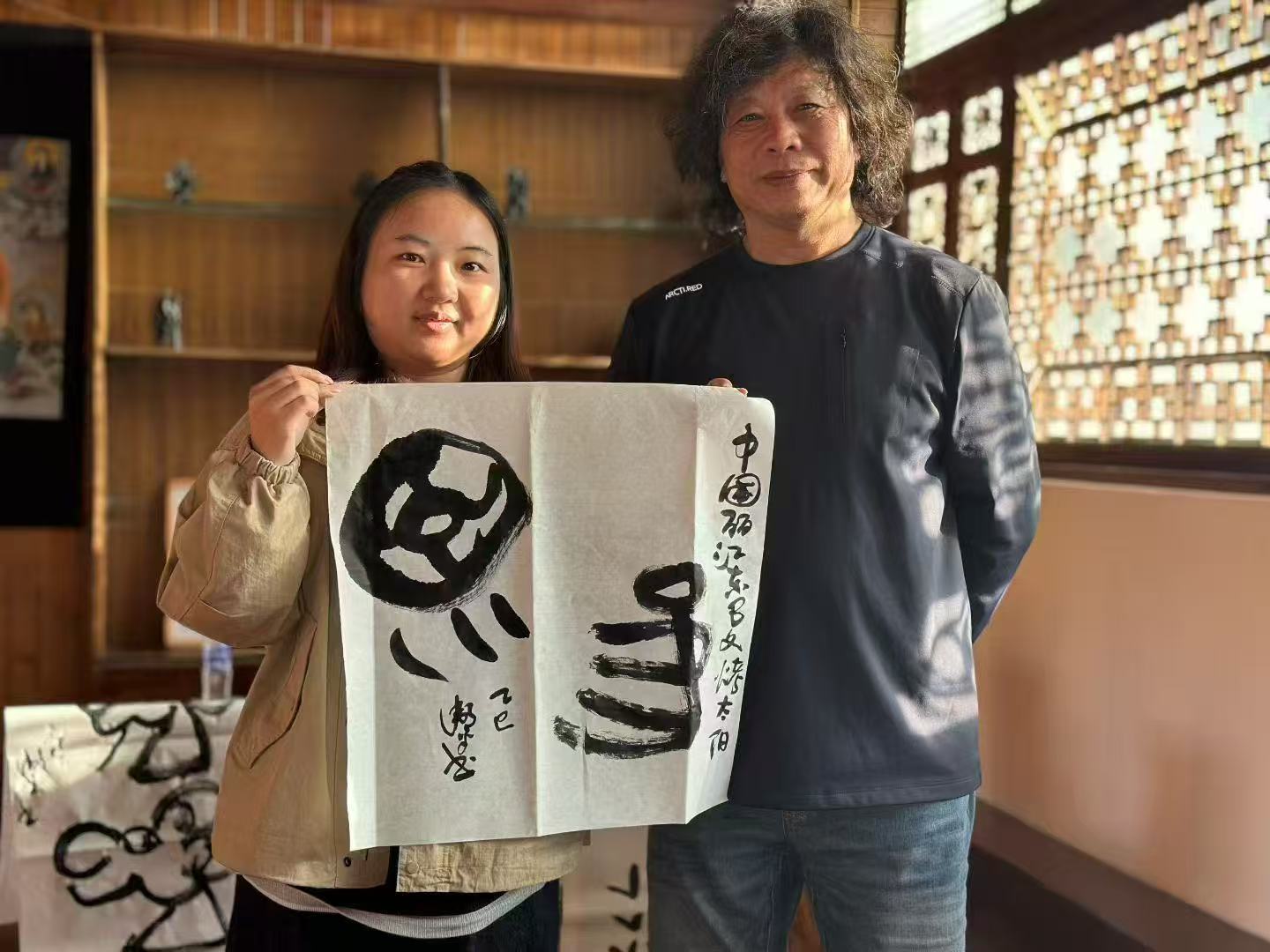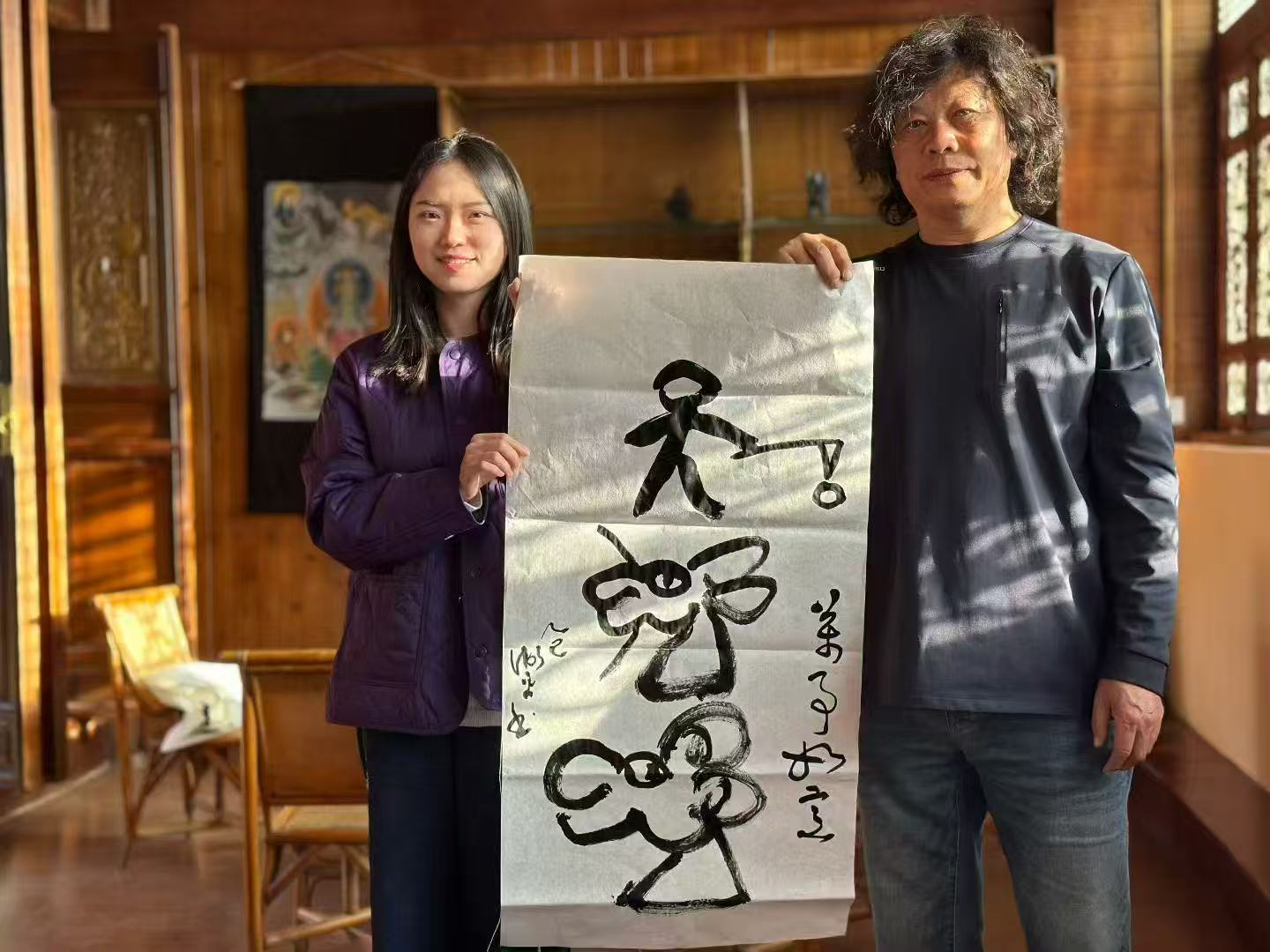 车行过蜿蜒的山路,拉市海的波光在云隙间忽隐忽现。当团队踏进恩宗村艺术馆的那一刻,时间仿佛缓缓慢了下来。在这里,学习不再是课堂里的讲述,而是指尖与自然材料的真实触碰。同学们亲手捞起纸浆,制成带有叶脉的手工纸,每一张都承载着纳西人对自然的理解与尊重。提笔蘸墨,学写东巴文字,那些如鸟如兽的笔画,不只是符号,更是一个民族看待世界的眼睛——山、水、爱、家,皆在弯折起伏间活了过来。