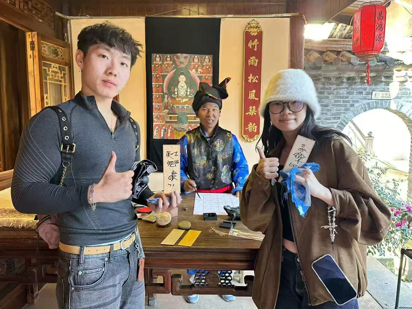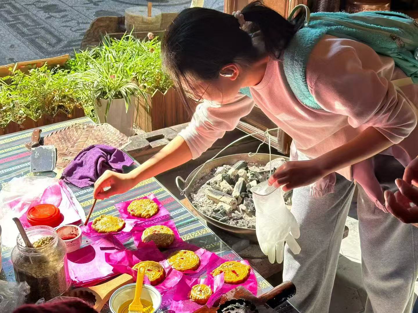 最动人的,是揉捏月饼的那个午后。面粉、红糖、酥油,简单的原料在我们手中逐渐成型。村里的阿婆笑着指点,说月饼上的纹样是纳西人世代相传的祝福。当香气从灶间飘出,我们忽然懂得:所谓文化传承,从来不是宏大的概念,它就藏在一张纸、一个字、一块饼的温度里。离开时,每个人手里都多了一叠自造的纸、一幅稚拙的东巴字、几枚刚烤好的月饼。但我们带走的,又何止这些?那是一整个下午的纳西生活,是拉市海的风吹过院落时,悄悄种进我们心里的、关于美与传承的答案。