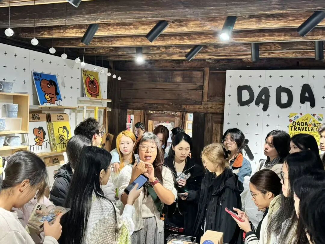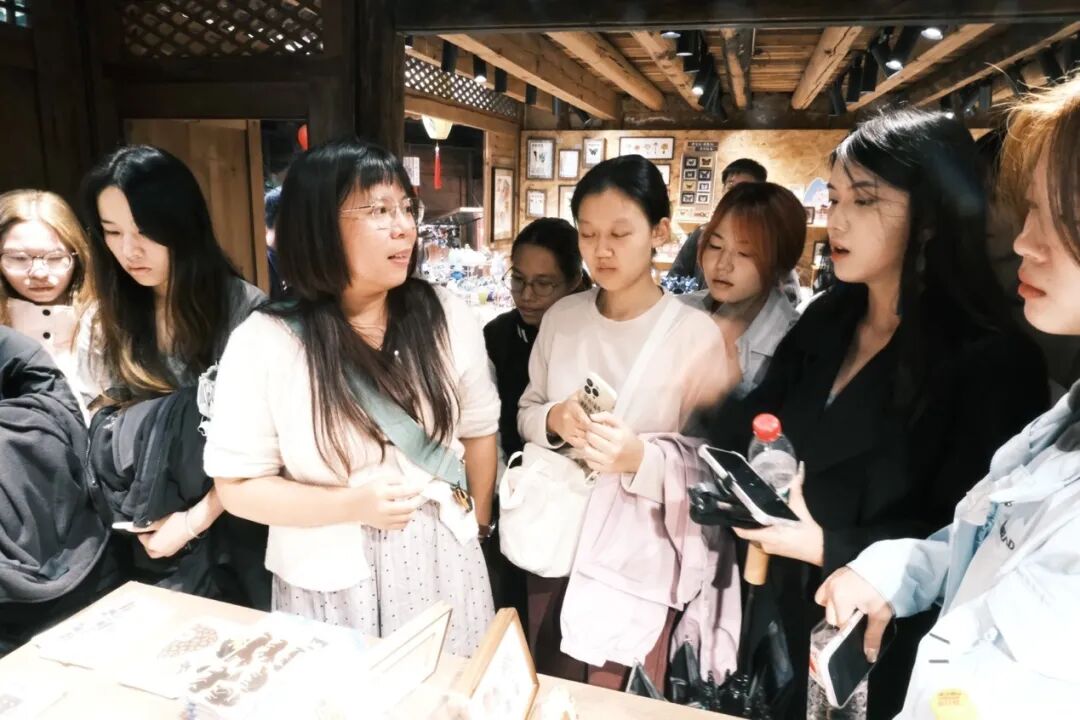 李婉琳为师生们动情地讲述了品牌的故事渊源:它始于三十年前,云南大学四位年轻人对这条千年古道的定义与推广。今天,「茶马古道」品牌正是秉承了这份云大学脉与乡建精神,用当代的创意和热情,让古老的驮铃声在现代社会重新回响。在走访三家不同定位的门店时,李主理人的讲解仿佛一位创作者在介绍自己心爱的“孩子”。她对每一件产品的创作故事、市场反馈和销售数据都如数家珍。
