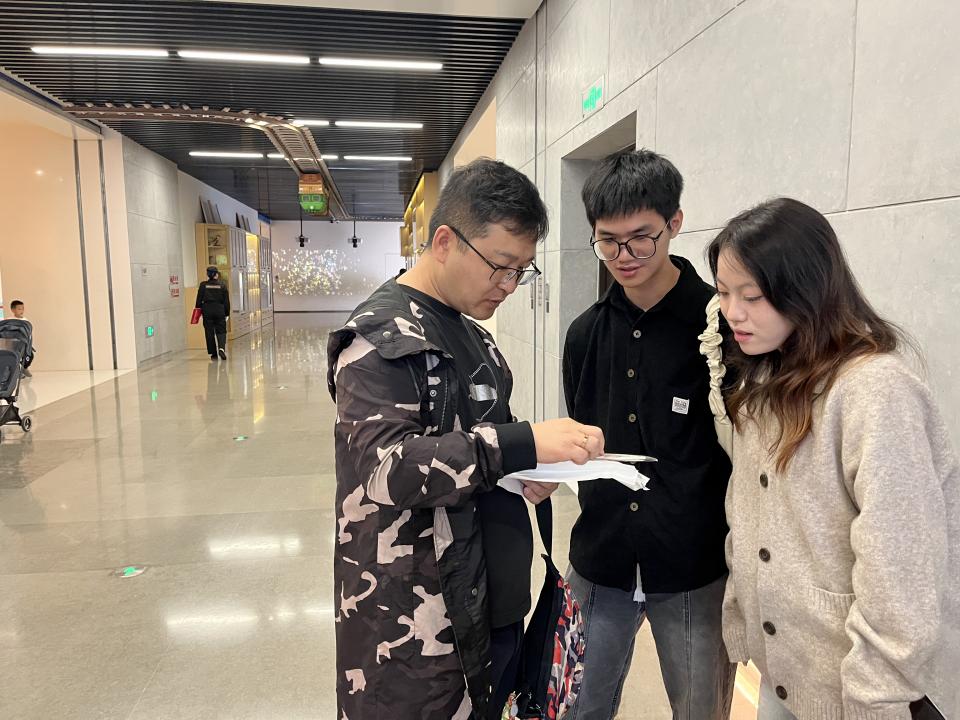 湛主任、李老师给学生讲解作品案例