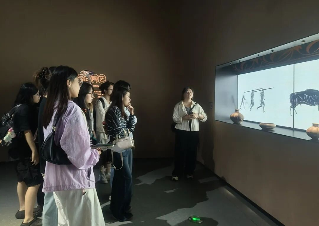 在浙江省博物馆的考察中,学生们观察馆藏文物的展陈逻辑与视觉叙事体系。作为省级综合性博物馆,其"越地长歌"基本陈列通过考古发现与历史文献的相互印证,构建起浙江地域文明的发展框架。在考察中思考文物展品与空间设计的对话关系,博物馆如何通过特展策划实现传统文化与当代审美的连接。随后考察浙江省非物质文化遗产馆,馆内通过"生活场景复原+技艺活态展示+数字档案库"的三位一体模式,构建了非遗保护的立体图景。这种将非物质文化遗产转化为可视化、可体验、可传播内容的实践,为数字媒体艺术在文化传承领域的应用开辟了新的思路。