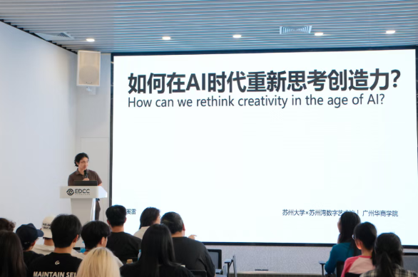 下午转赴苏州,赴往苏州湾数字艺术馆组织的专业讲座。苏州大学艺术学院奚雷博士《如何在AI时代重新思考创造力》的分享,与上午的艺术史考察形成巧妙对话。讲座探讨了人工智能作为创作工具的双重性:一方面,算法能够快速生成视觉方案,提升创作效率;另一方面,艺术创作的核心价值仍在于人的审美判断与观念表达。奚博士通过具体案例解析人机协作的创作模式,引导学生思考如何将技术工具转化为个人艺术语言的建设性力量。