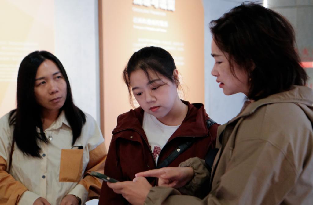 刘老师给学生讲解展馆数字艺术案例